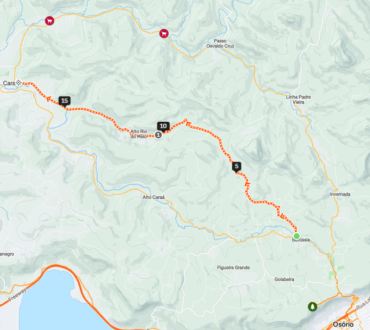 Após um longo trecho em descida fica Caraá (km 35).